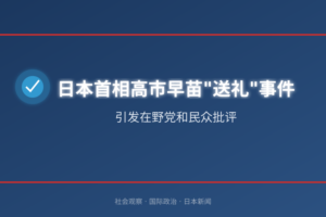 日本首相高市早苗向300多名议员发放礼品,总花费1071万日元,涉嫌违反《政治资金规正法》,引发在野党和民众批评。