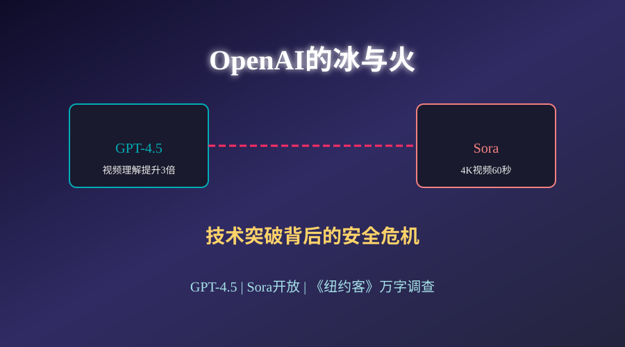 OpenAI近期密集发布GPT-4.5预览版并开放Sora公众测试,技术能力大幅提升的同时,《纽约客》万字调查却揭露了其内部安全研…