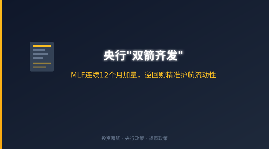 央行”双箭齐发”:MLF连续12个月加量,逆回购精准护航流动性