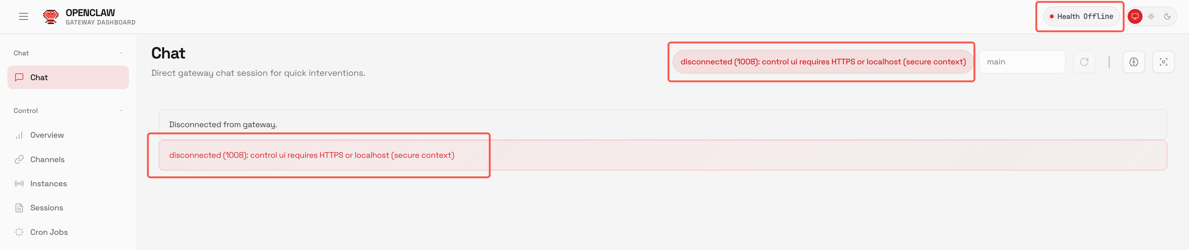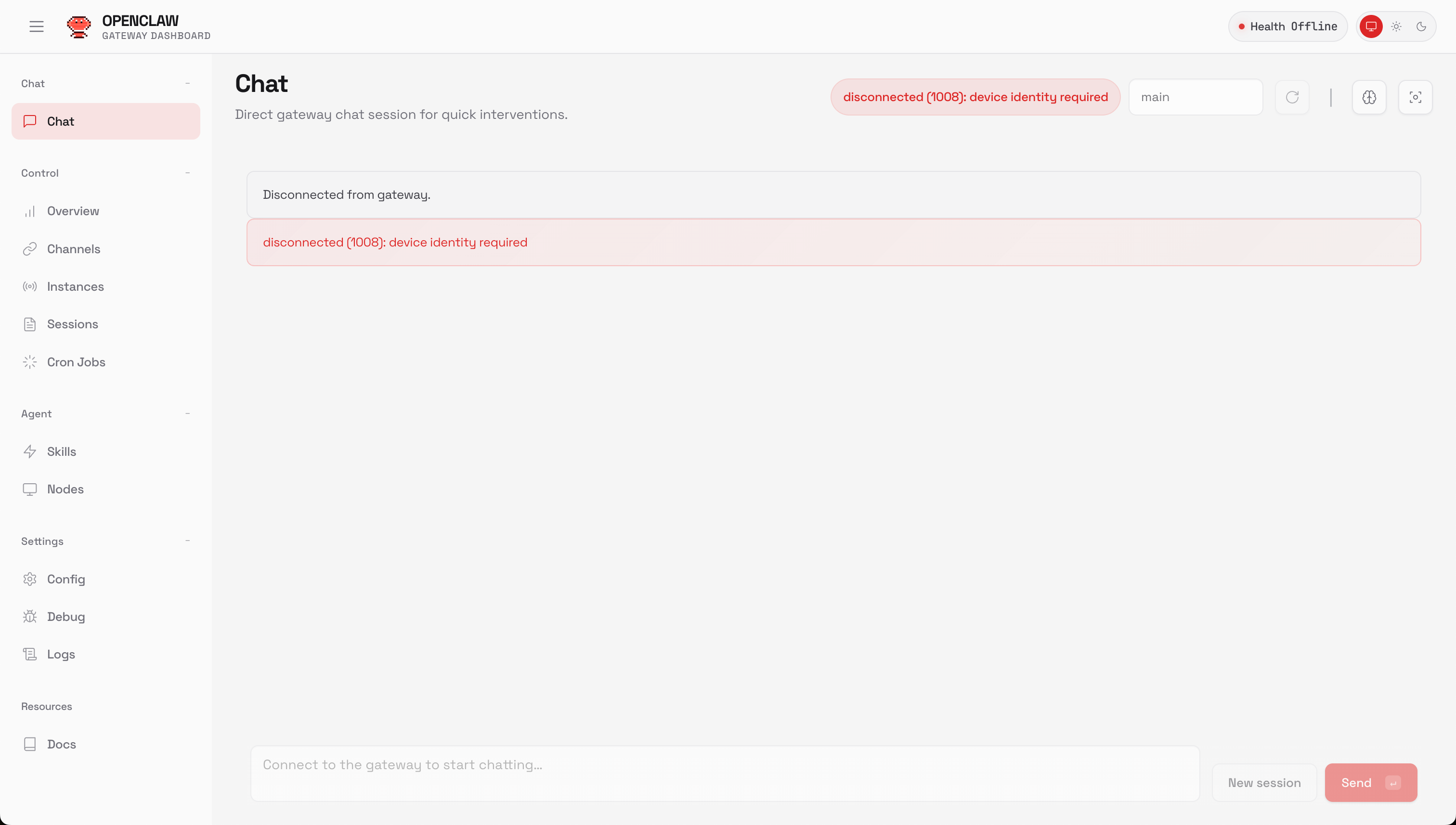 接下来在浏览器内输入如下链接,访问OpenClaw的WebUI(Dashboard),验证是否已无法访问:
