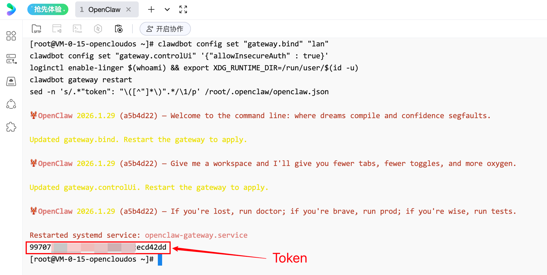sed -n 's/.*"token": "\([^"]*\)".*/\1/p' /root/.openclaw/openclaw.json