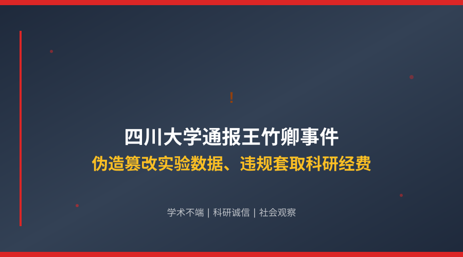 2026年2月14日晚,四川大学发布通报,公布了对该校教师王竹卿相关问题的调查处理结果。通报显示,王竹卿存在严重的科研失信行为和违规套取科研经费等问题,学校已对其作出降低岗位等级、停止研究生招生资格等处分。